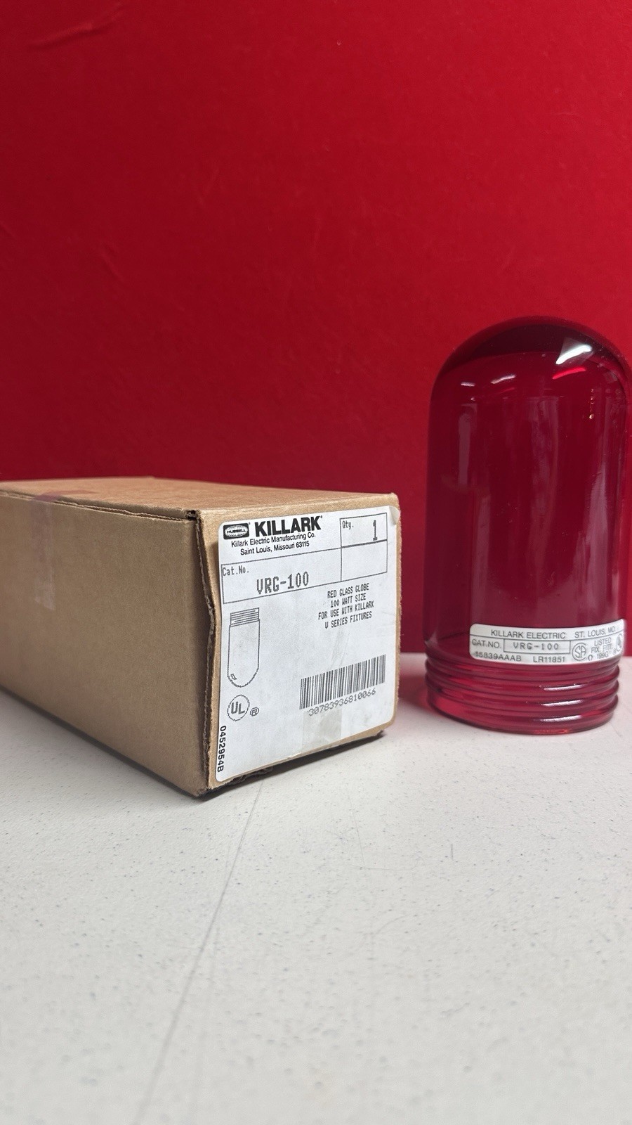 The Killark Electric VRG-100 Red Glass Light Cover is a high-quality, red cylindrical glass lamp designed for industrial use. Made in the United States, this lamp is durable and long-lasting. The round shape and vibrant red color make it a stylish and functional addition to any workspace.