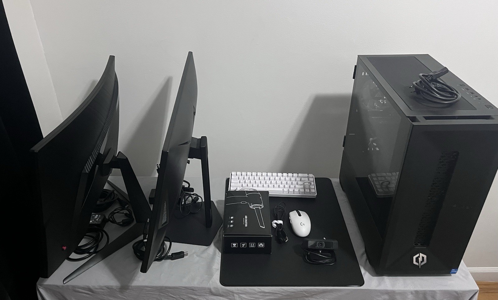Complete ready-to-use gaming setup for sale, perfect for competitive gaming and multitasking: PC with RTX 3050, Intel i5, 16GB RAM, and built-in WiFi, paired with two monitors (TKC 280Hz for high-performance gaming and a 144Hz secondary monitor), plus Logitech mouse, gaming keyboard, premium glass mousepad, and webcam included, all in excellent condition and sold as a full bundle.