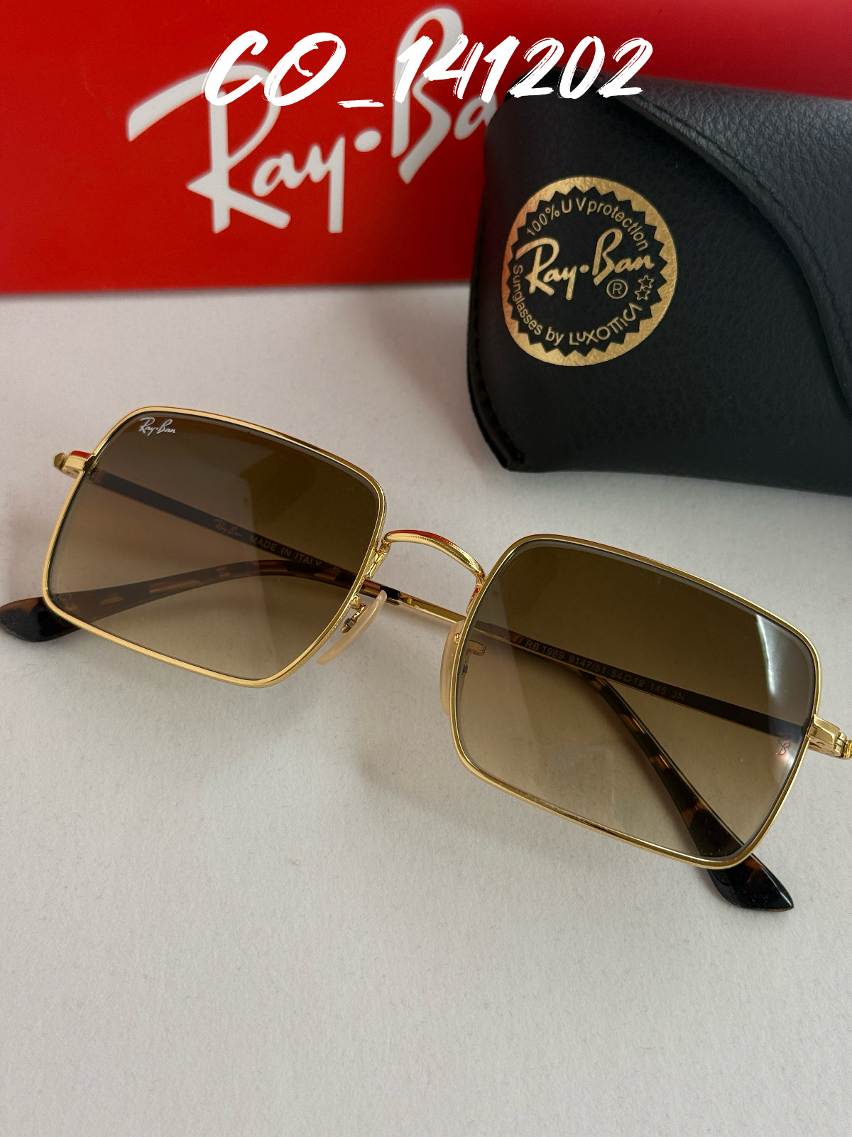 Ray-Ban RB1969 Rectangle Sunglasses Gold Metal Frame Brown Lens