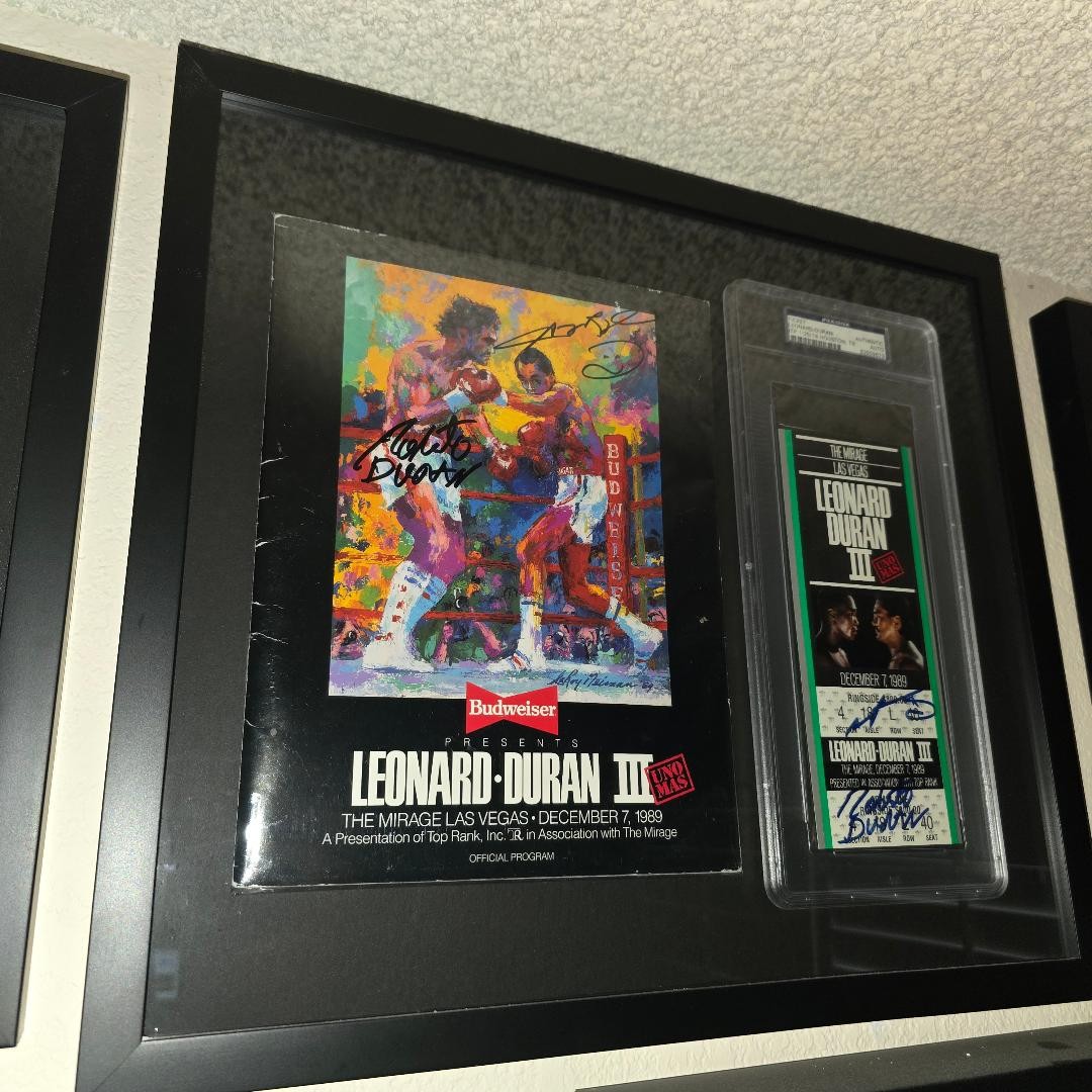 Sugar Ray Leonard vs Roberto Duran III, Dual signed program & ticket framed