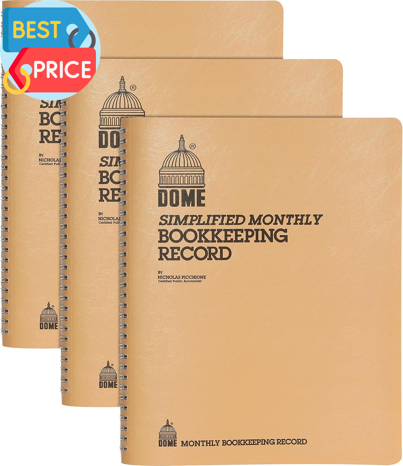 Dome 612BD Bookkeeping Record Books,Monthly,Undated,9-Inch X11-Inch,3/Bd,Beige