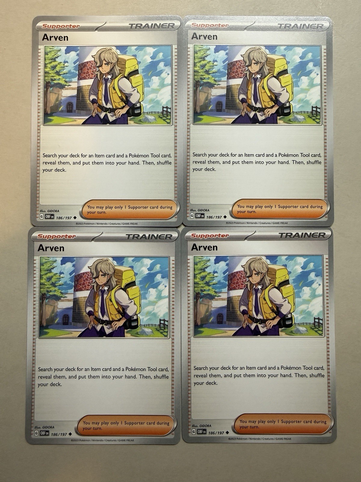 4x Arven Playset 186/197 Obsidian Flames Pokemon TCG NM