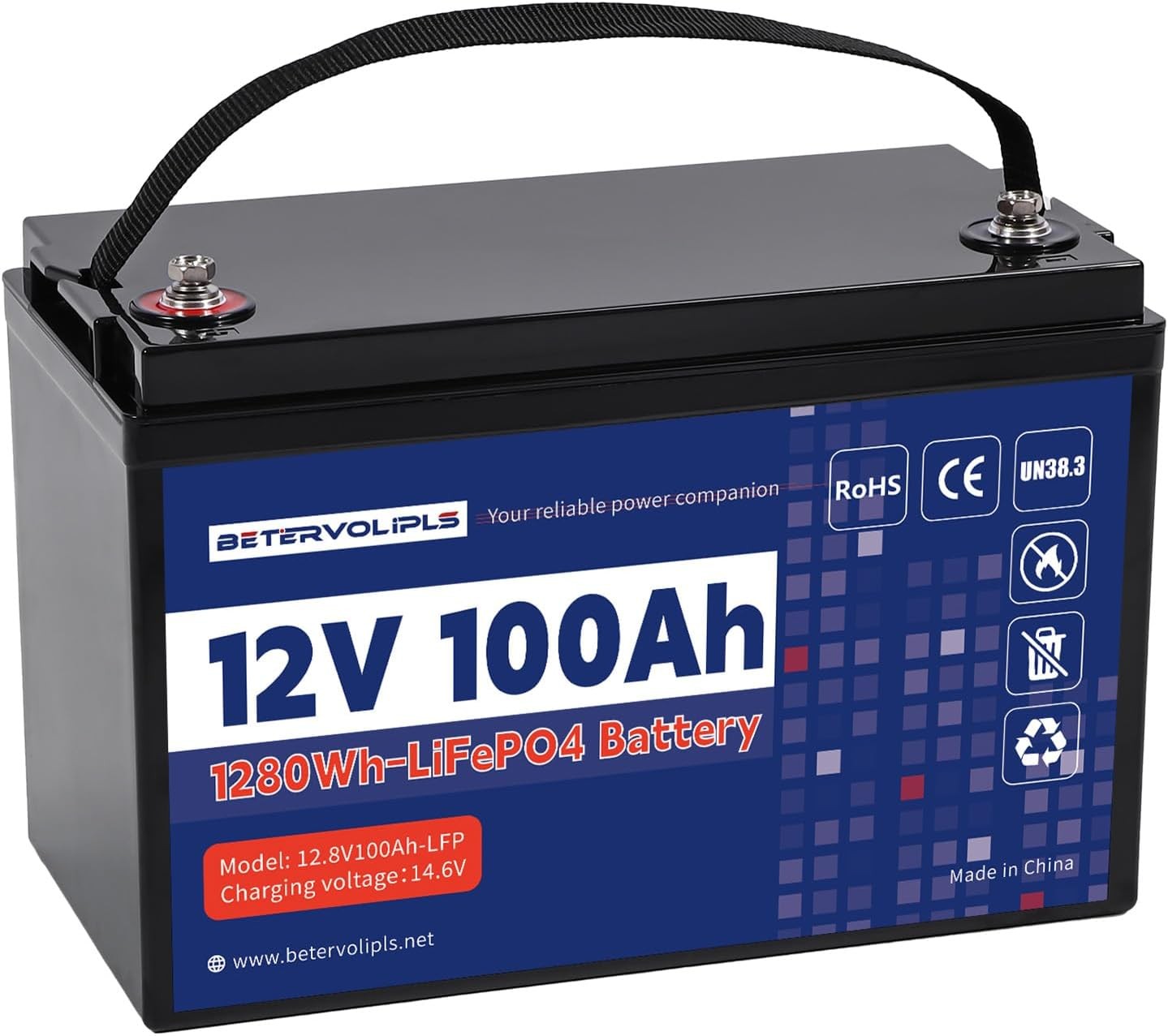 12V 100Ah LiFePO4 Lithium Battery With Built-in 100A BMS For RV, Solar,Marine