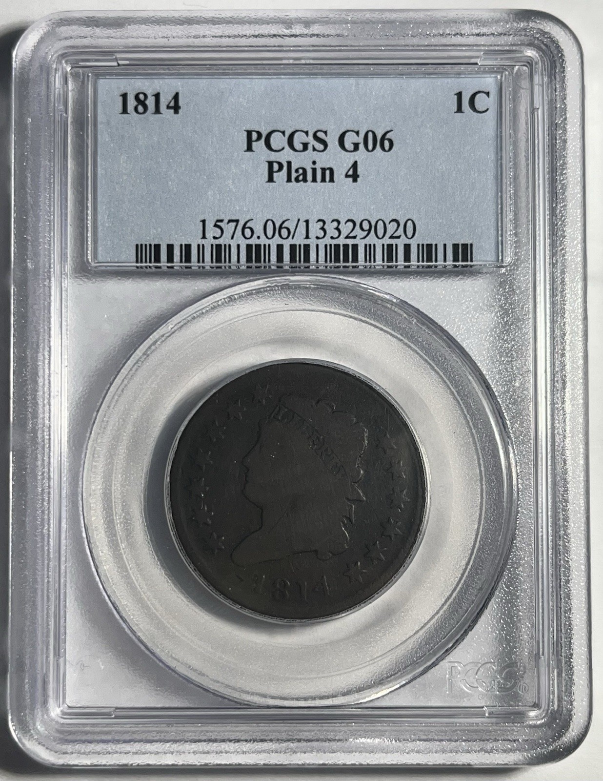 1814 PLAIN 4 CLASSIC HEAD LARGE CENT GRADED PCGS G06