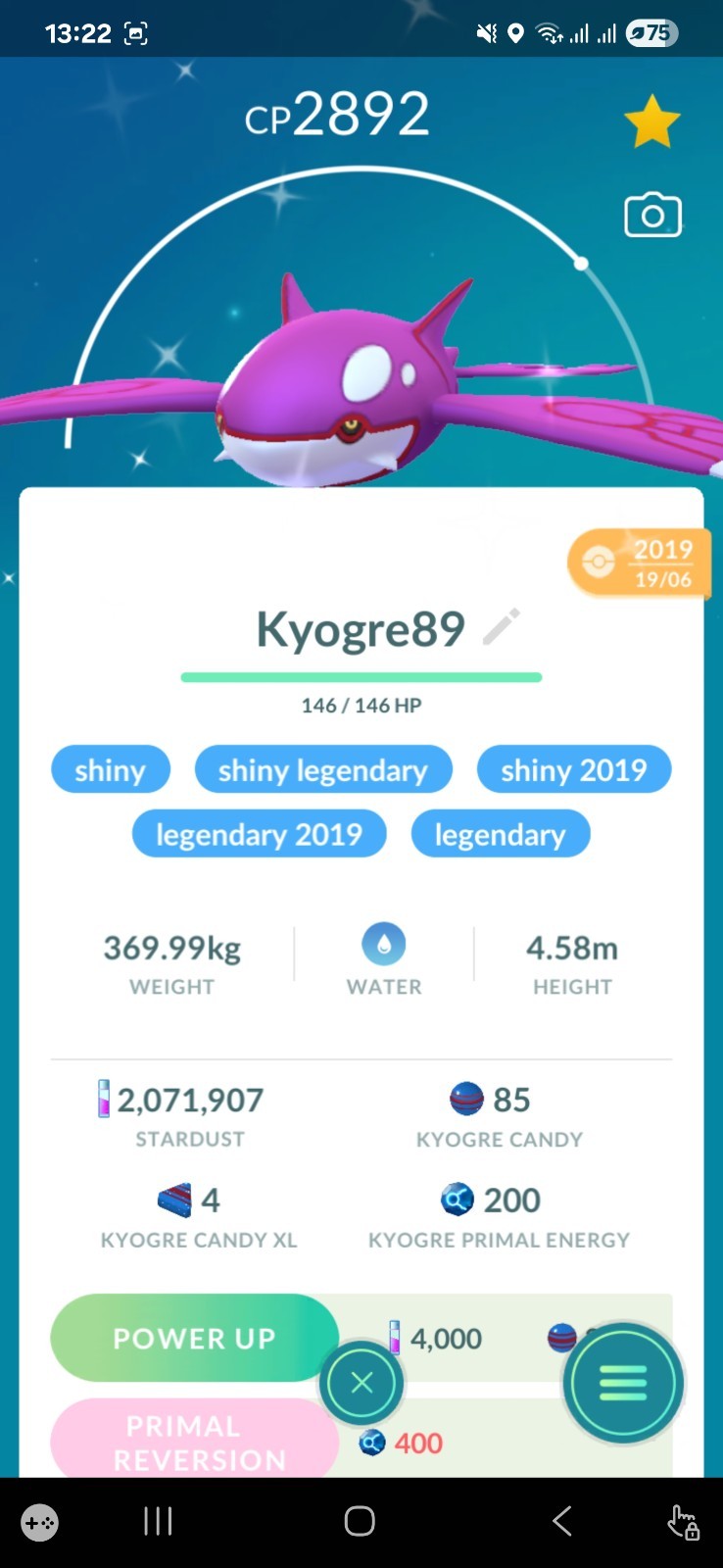 Shiny Kyogre ( Caught In 2019 ) Pokemon Tr@de Go