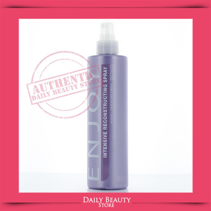 On sale • save 3%Enjoy Repair Intensive Reconstructing Spray 10oz. Cleanse hair with the ENJOY® shampoo of choice, rinse and remove excess water. Apply Intensive Reconstructing Spray (I.R.S.) to hair. DO NOT RINSE.