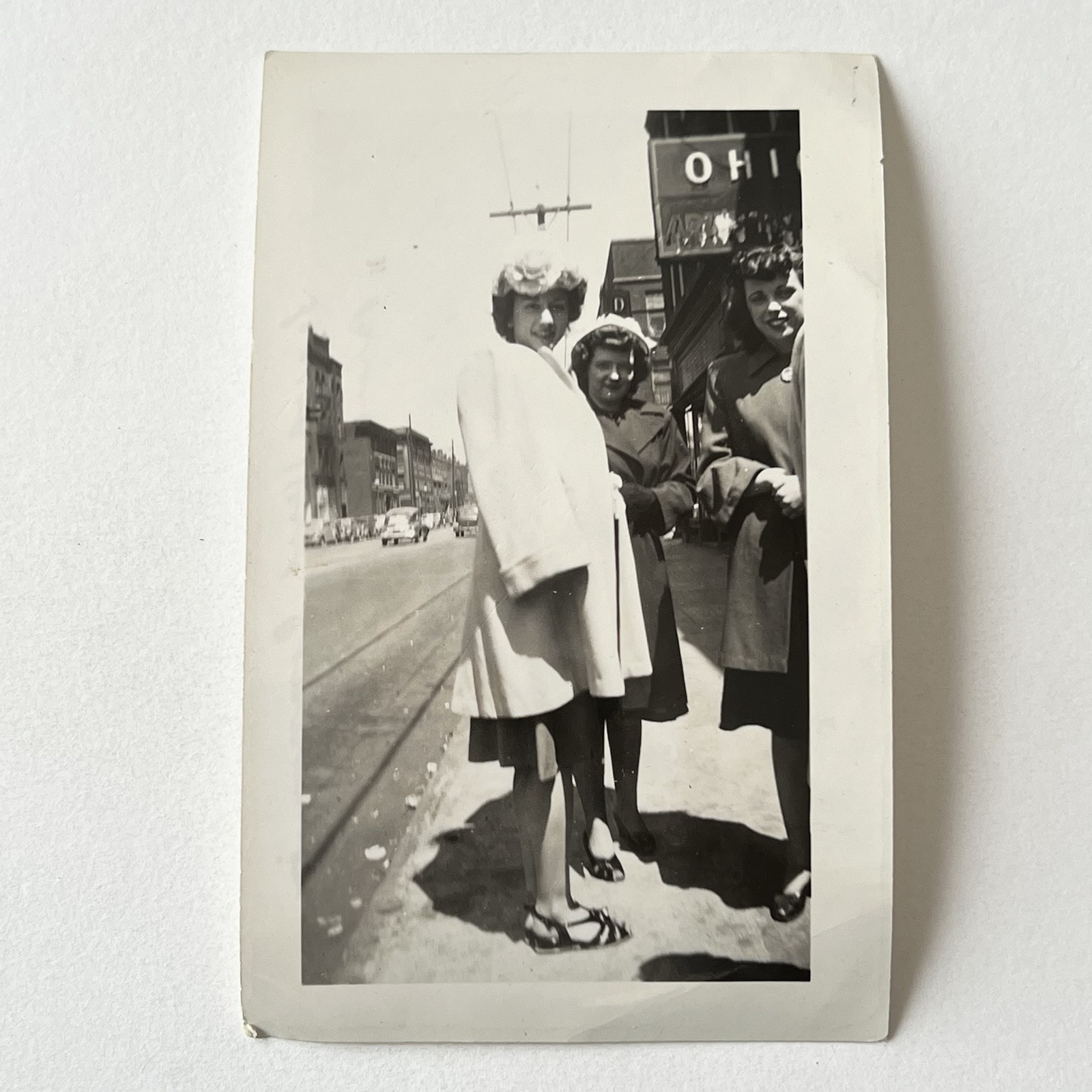 Vintage Snapshot Photograph Beautiful Young Women On Street Fashionable