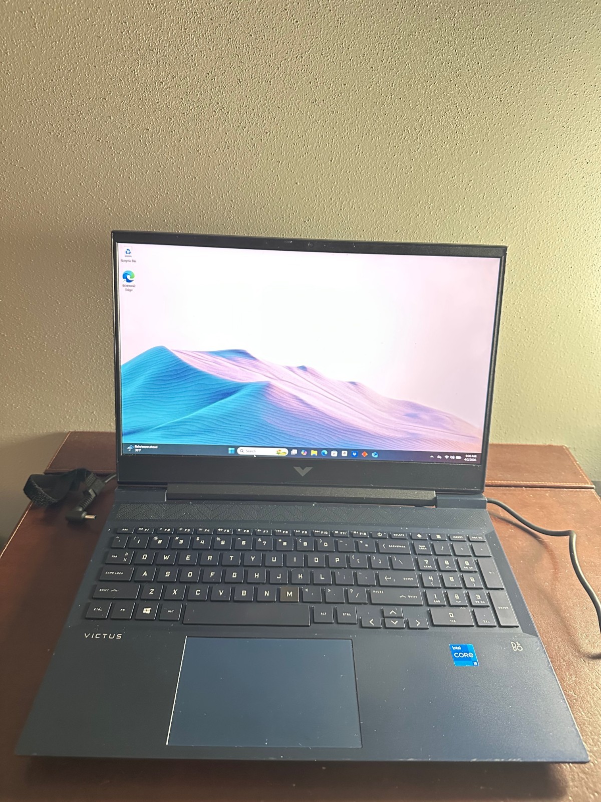 HP Victus gaming laptop is in fair condition overall. "M" key on keyboard has been replaced and has slightly different color. The keyboard also has responsiveness issues overall. It is not sticky.