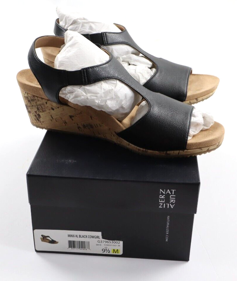 Naturalizer Women's 9.5M Minx-N Black Cowgirl Wedge Sandals Shoes
