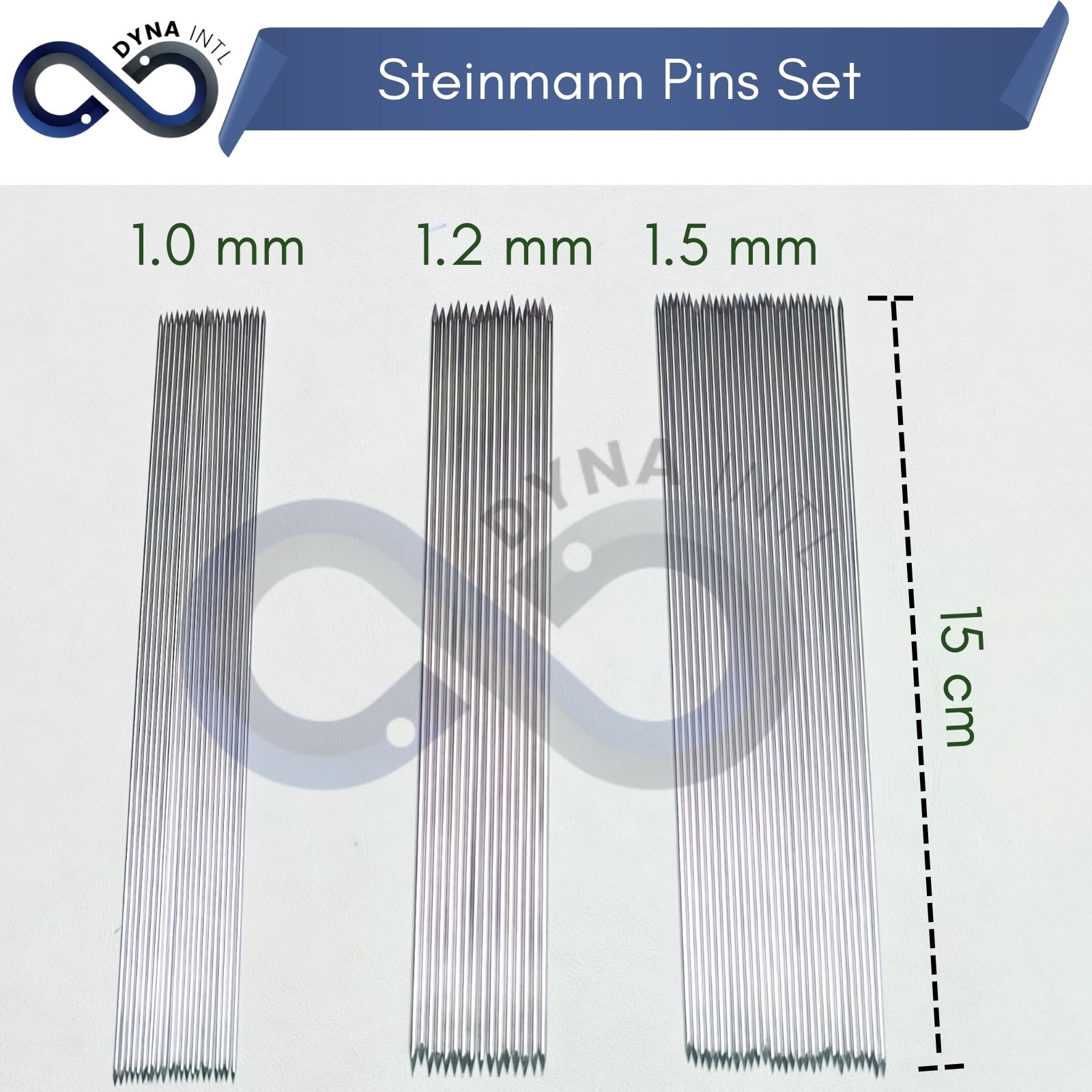 On sale • save 10%Steinmann Bone Fixation Pins. Orthopedic Surgery, Veterinary Surgery, Bone Fixation. 300 Pcs (3 Sizes). 1.0 mm x 15 cm – 100 pcs. 1.2 mm x 15 cm – 100 pcs. 1.5 mm x 15 cm – 100 pcs. Features & Benefits.
