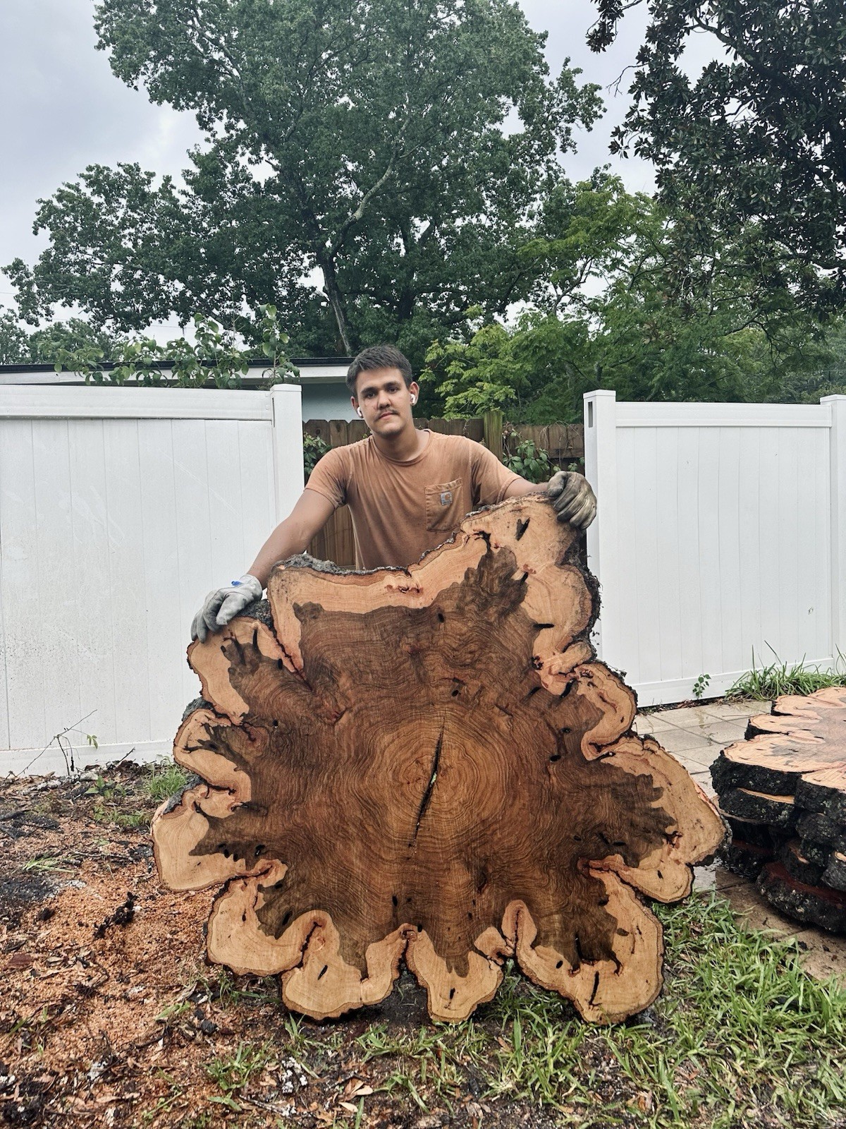 Beautiful solid oak slab — natural edge, perfect for tables or décor projects. We have many other slabs available in different wood species — kiln-dried, smooth-sanded, and ready for use. Custom-made tables also available.