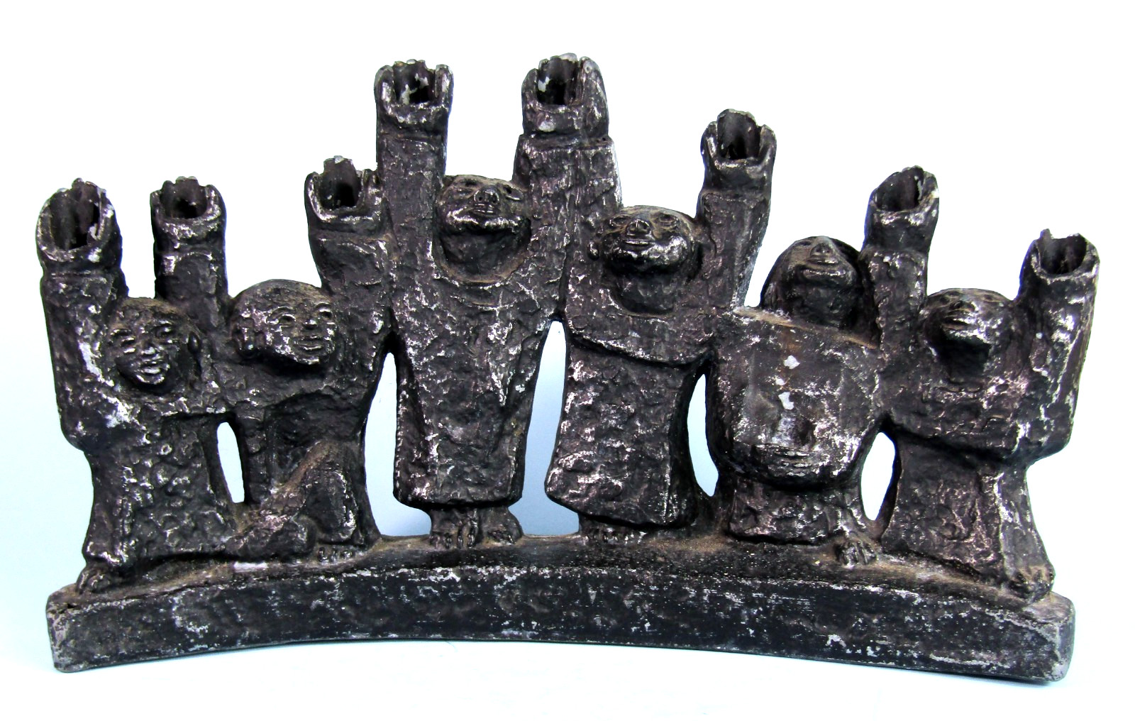 MIDCENTURY MODERN BRUTALIST Cast Metal Hanukkah Menorah Chaim Gross Sculpture