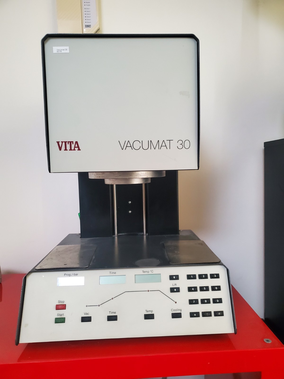The product is a used dental lab porcelain furnace with vacuum pump.