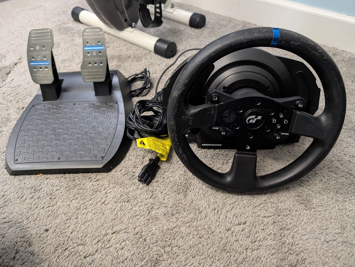 Thrustmaster T300 RS with pedals and OEM power cord.