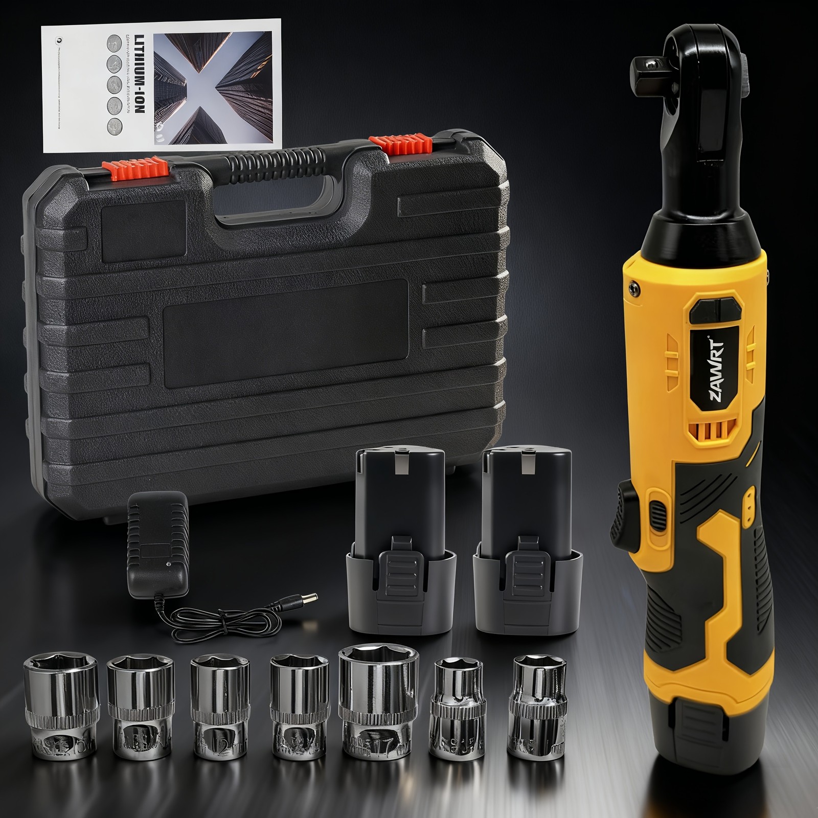 3/8-inch electric cordless ratchet right-angle wrench power tool (2 batteries)