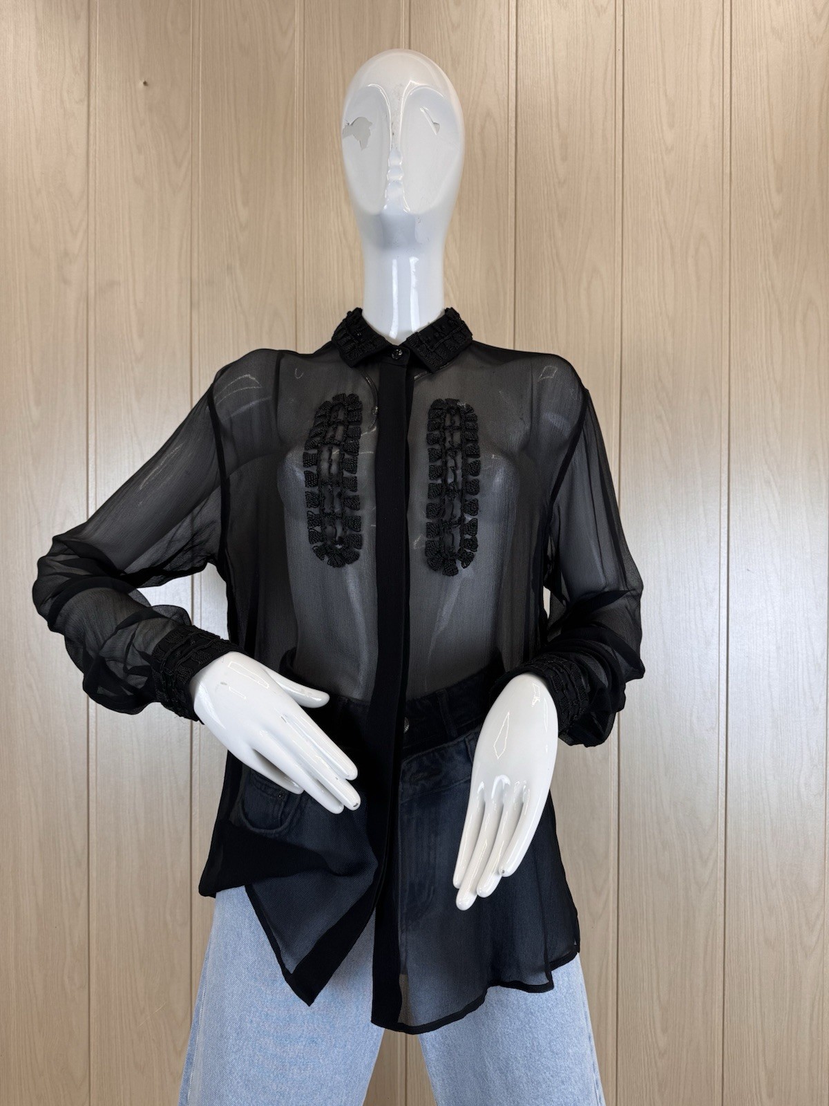 Saint Laurent Black Silk Chiffon Shirt With Embroidery Size M