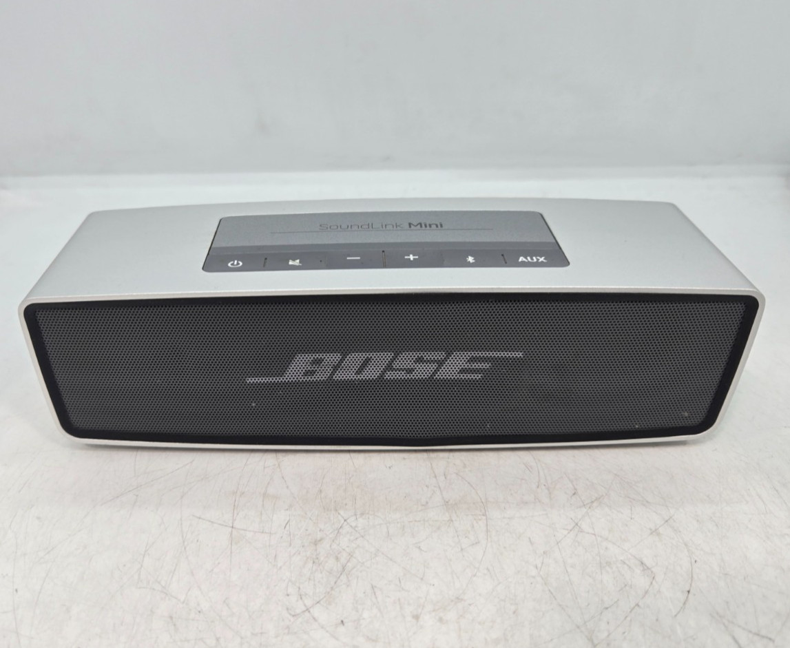 Bose SoundLink Mini Speaker - Silver. 1Bose SoundLink Mini Portable Wireless Bluetooth Speaker. Tested and functions as intended. Charging cable is NOT included. Photos reflect the condition of the product.