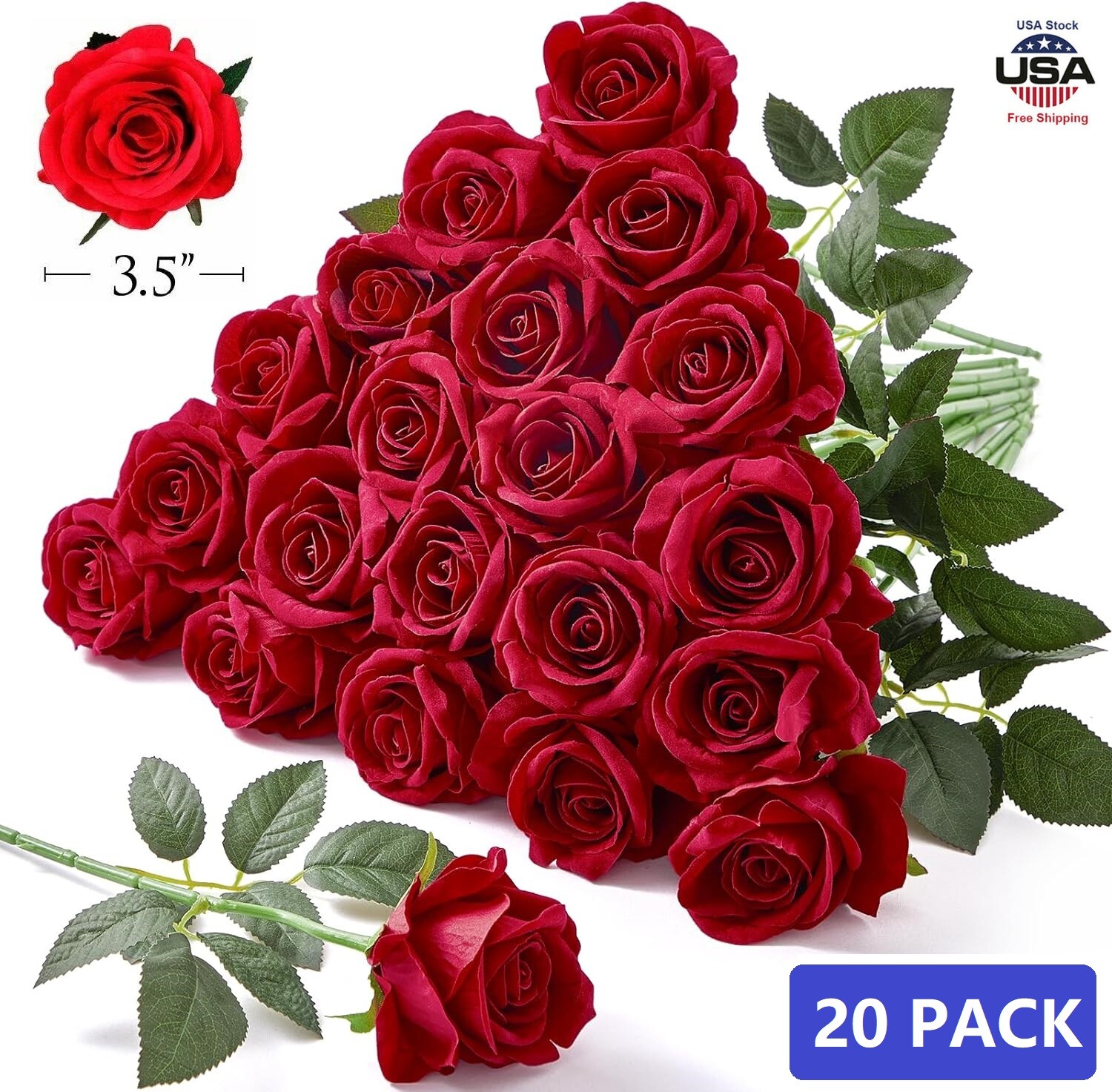 20PCS Red Silk Rose Artificial Flower Proposal Bouquet Home Decor Party Gift USA