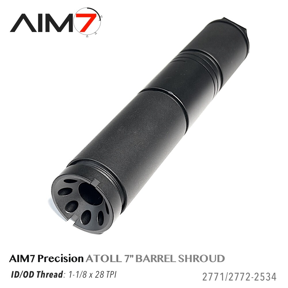 AIM7 ATOLL-7525 Barrel Shroud 30CAL & 223 70%-35% 3 IN 1 (MAKE YOUR OWN SIZE). With its patent-pending design, you can create the perfect comp length. Made from durable 6061-T6 Aluminum and hard coat anodized, each component ensures longevity.