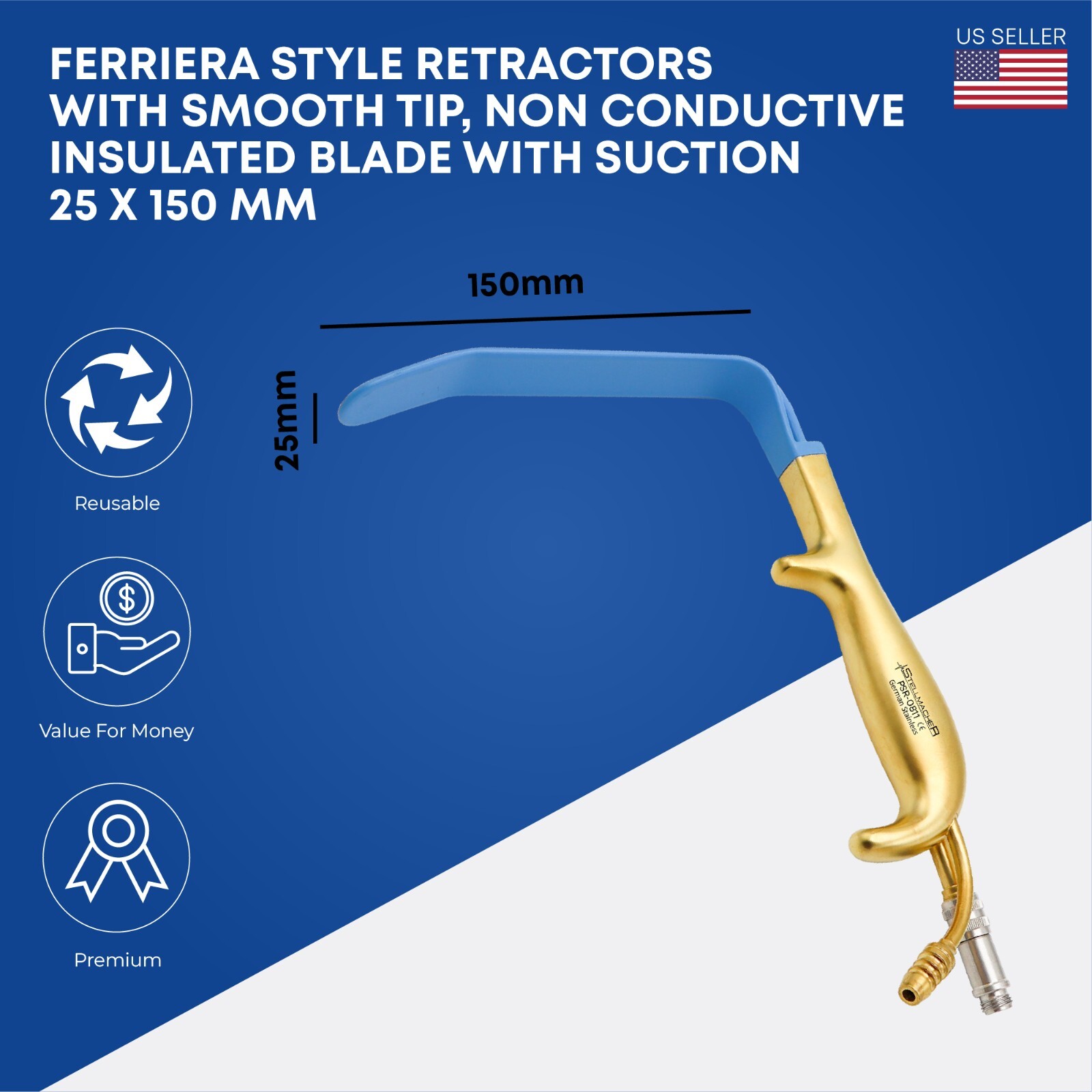 Ferriera Style Retractor with Smoth Tip 25 mm x 15cm Plastic Surgery Instruments