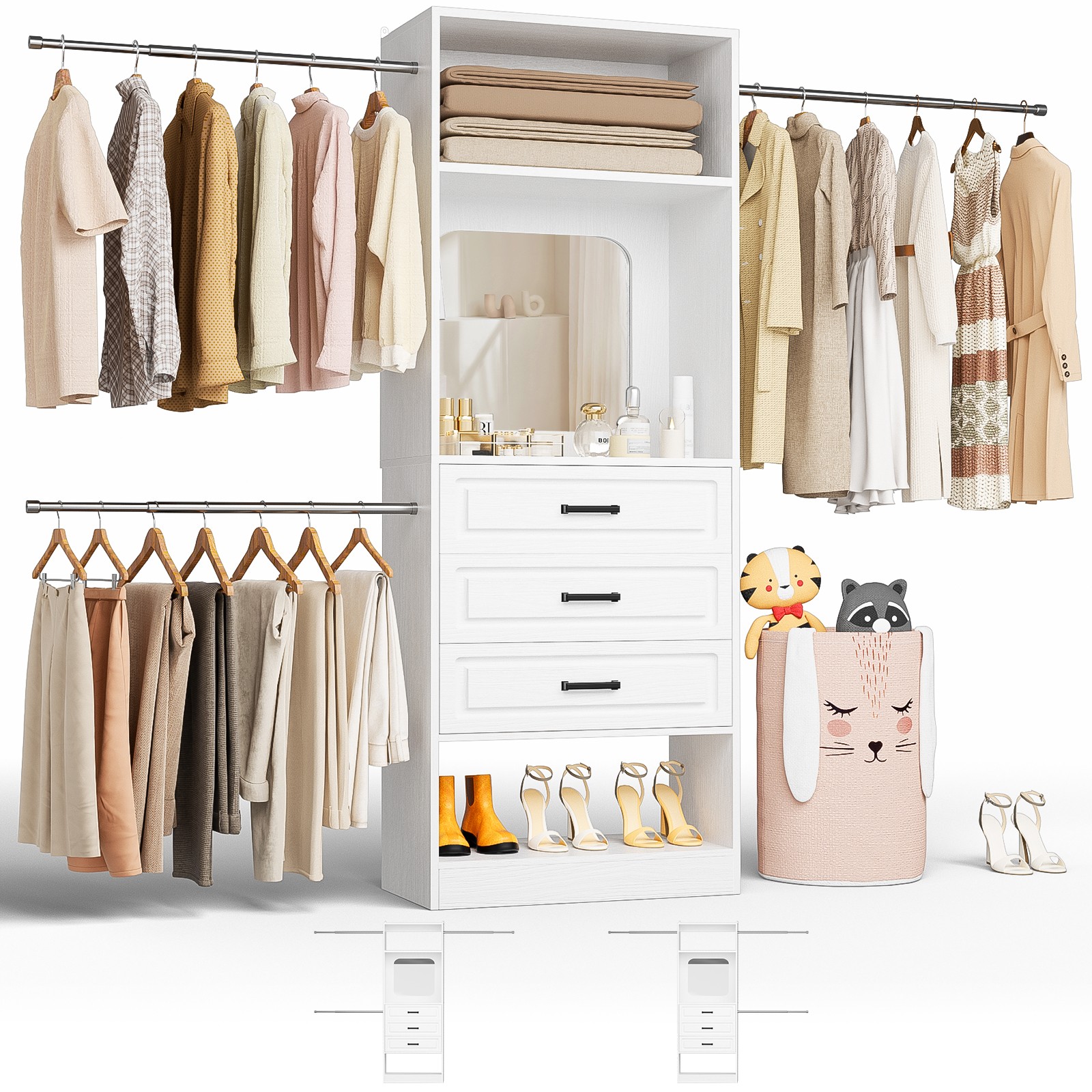 48''-96'' Walk-in Closet Organizer System with Mirror & Drawers & 3 Hanging Rods