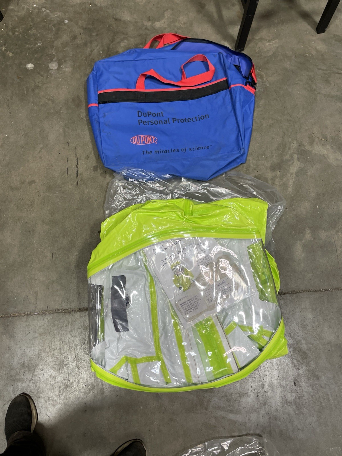 (TK555TLY4X000100). Last inspected/certified in 2011. • Material: DuPont Tychem TK. • High chemical & vapor barrier. No major defects noticed on inspection.