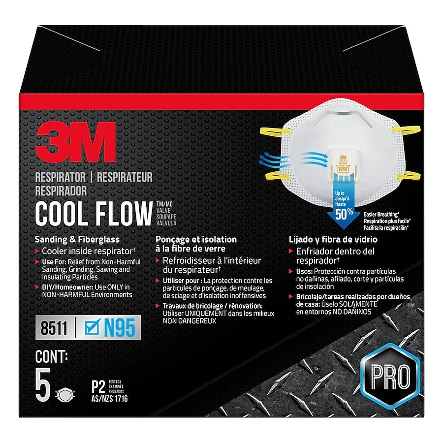 Part of our Pro Series, the 3M™ Cool Flow™ Valve Particulate Respirator 8511 is designed with the pro in mind to help bring you protection and comfort. Whether you're hanging drywall or sanding a floor, rely on the trusted protection of the 3M™ Cool Flow™ Valve Particulate Respirator 8511.