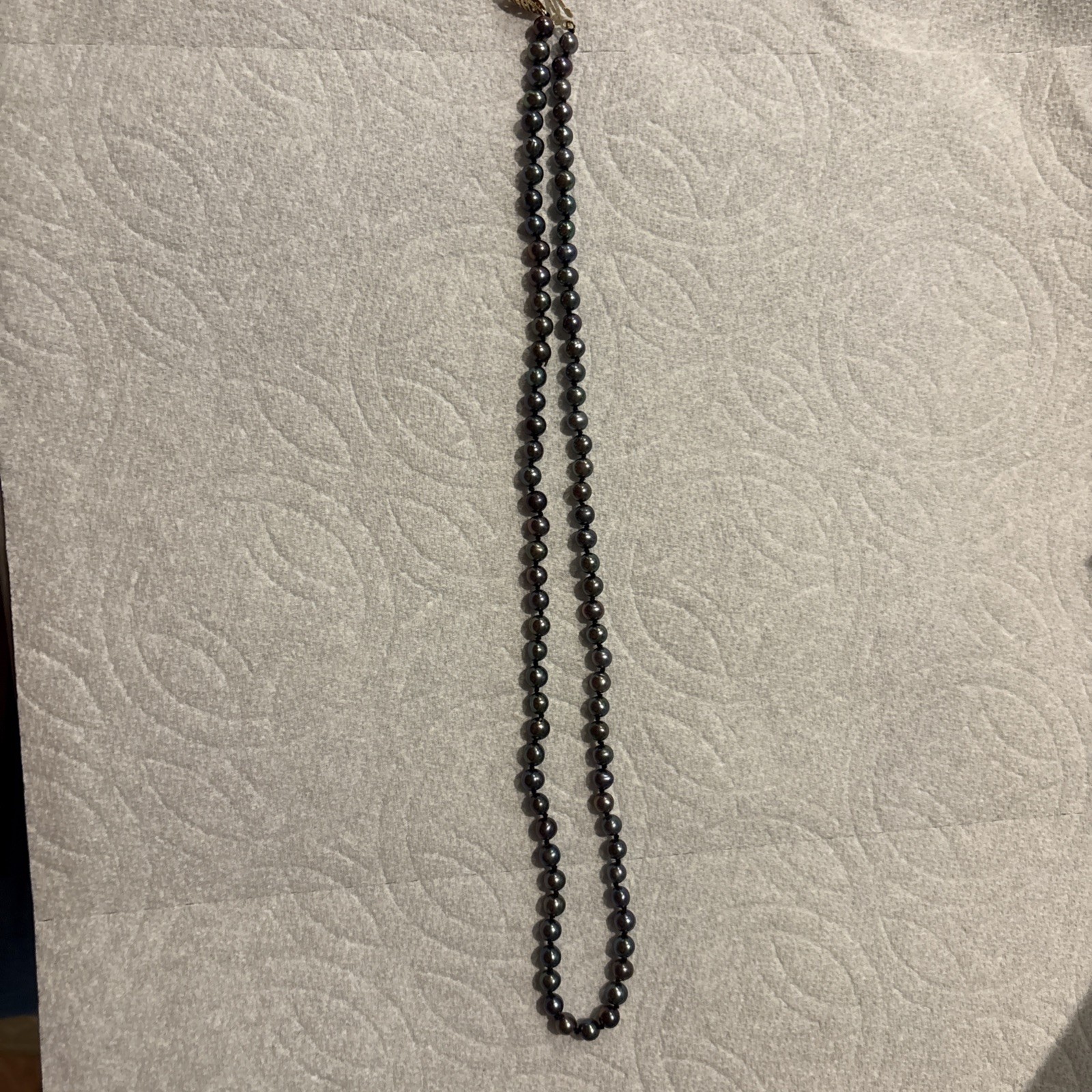 Vintage JCM Tahitian Peacock Rainbow Black Pearl Necklace 14K Gold CLASP 18"