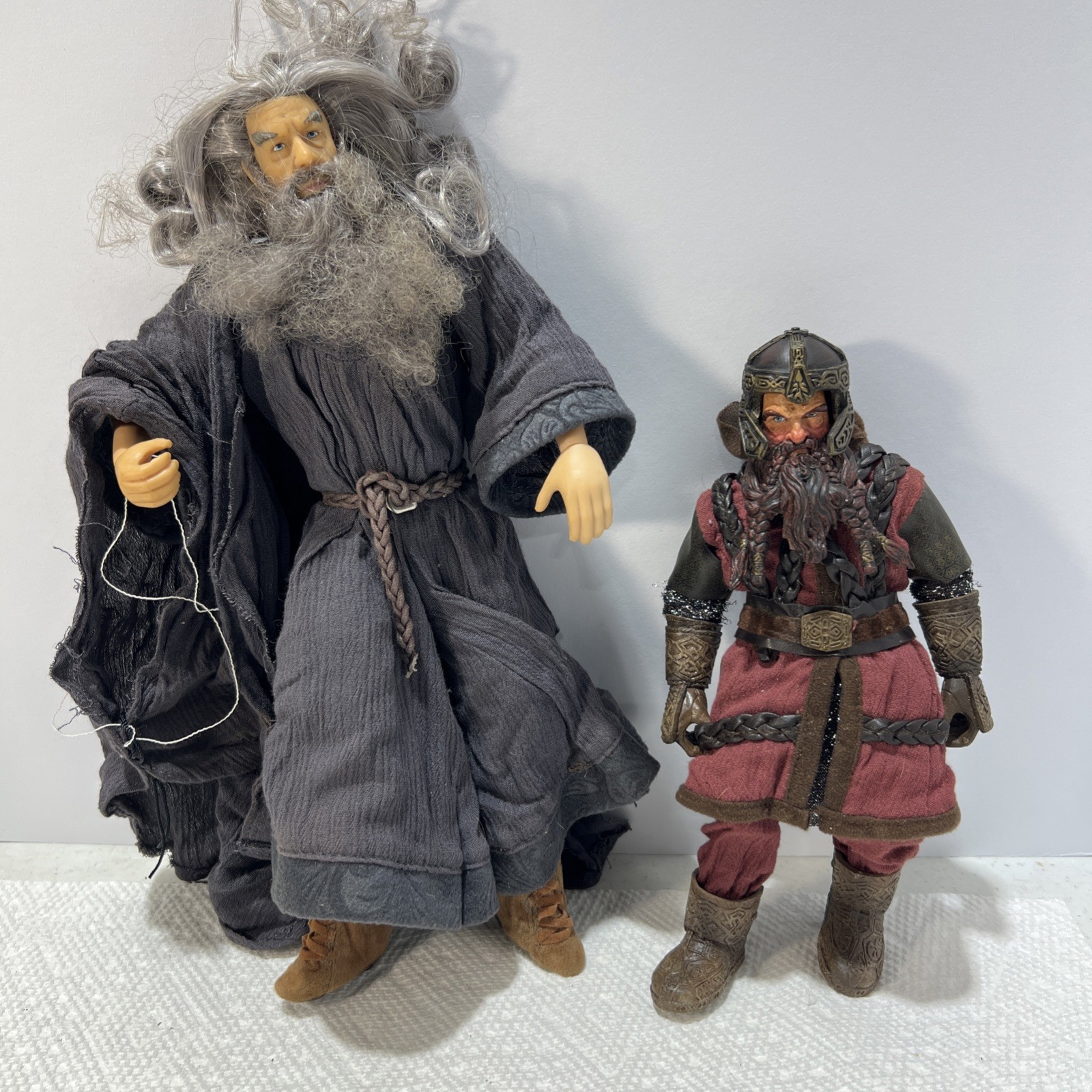 The product is a collectible Lord of the Rings figurine set featuring characters Gimli and Gandalf the Grey from the fantasy franchise. These figurines captures the essence of the beloved characters from the Lord of the Rings series, making it a must-have for fans and collectors alike. The detailed craftsmanship and intricate design bring the characters to life, making it a standout piece for any fantasy enthusiast's collection.