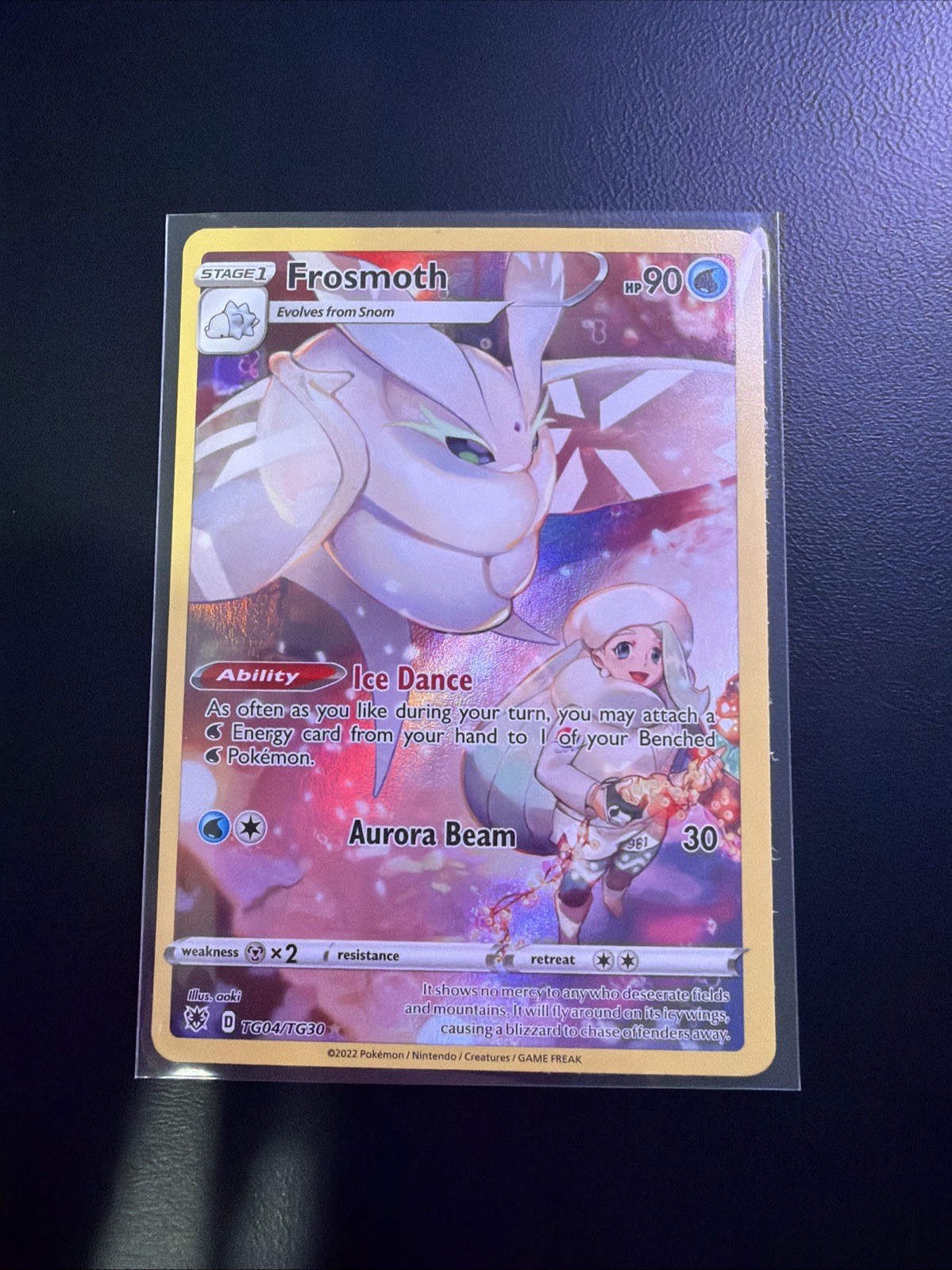 The Frosmoth TG04/TG30 (Melony) Astral Radiance Pokemon TCG card is a standard-sized, ultra rare collectible card from the Astral Radiance set. Manufactured by Nintendo, this FOIL card features the character Frosmoth, suitable for ages 6 and up. The card is in English language and belongs to the Pokémon TCG game. With its unique design and rarity, this card is a coveted addition to any collector's deck.