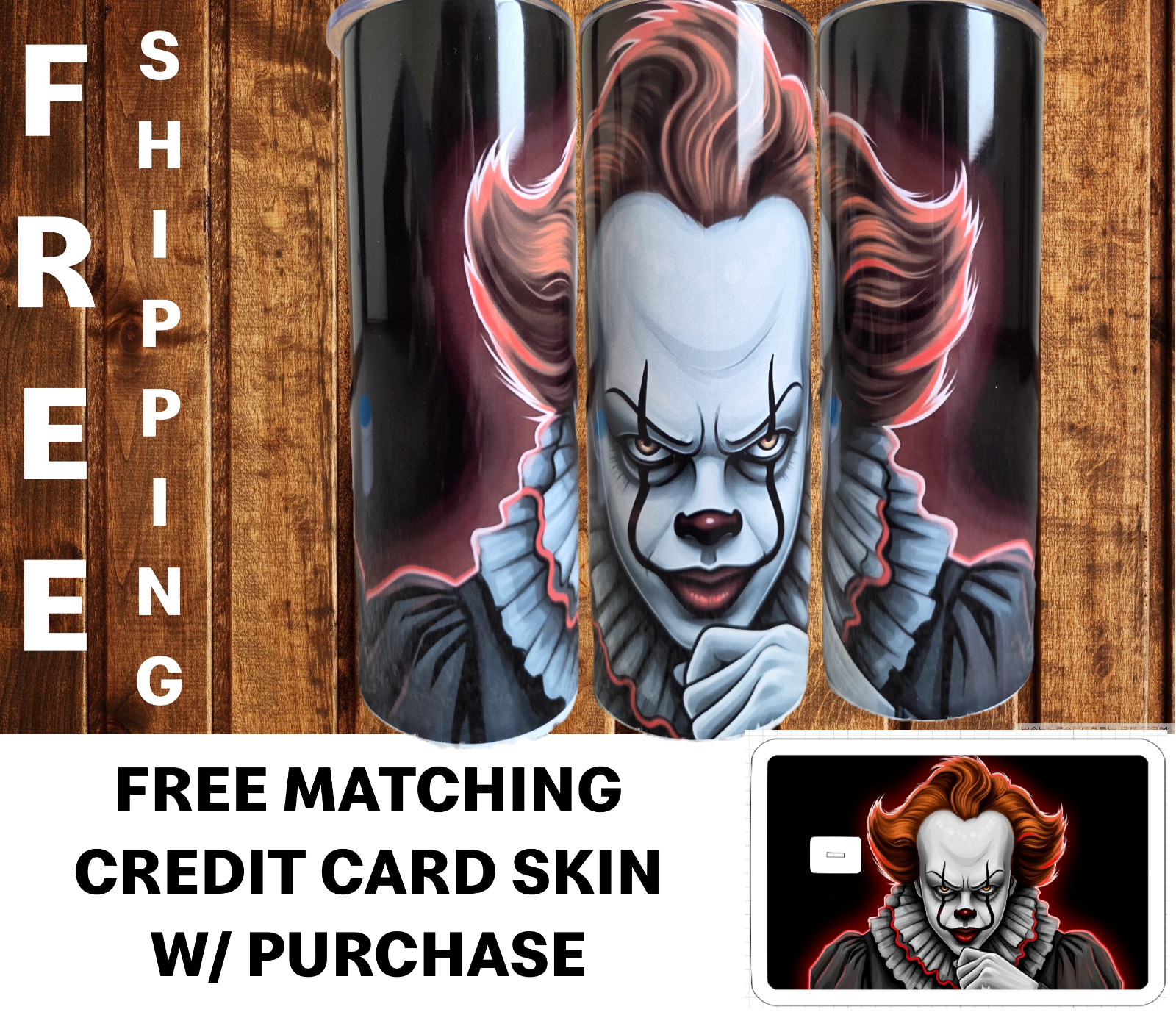 Pennywise 20oz Tumbler Travel Mug Cup Free Credit Card Skin Halloween Horror IT