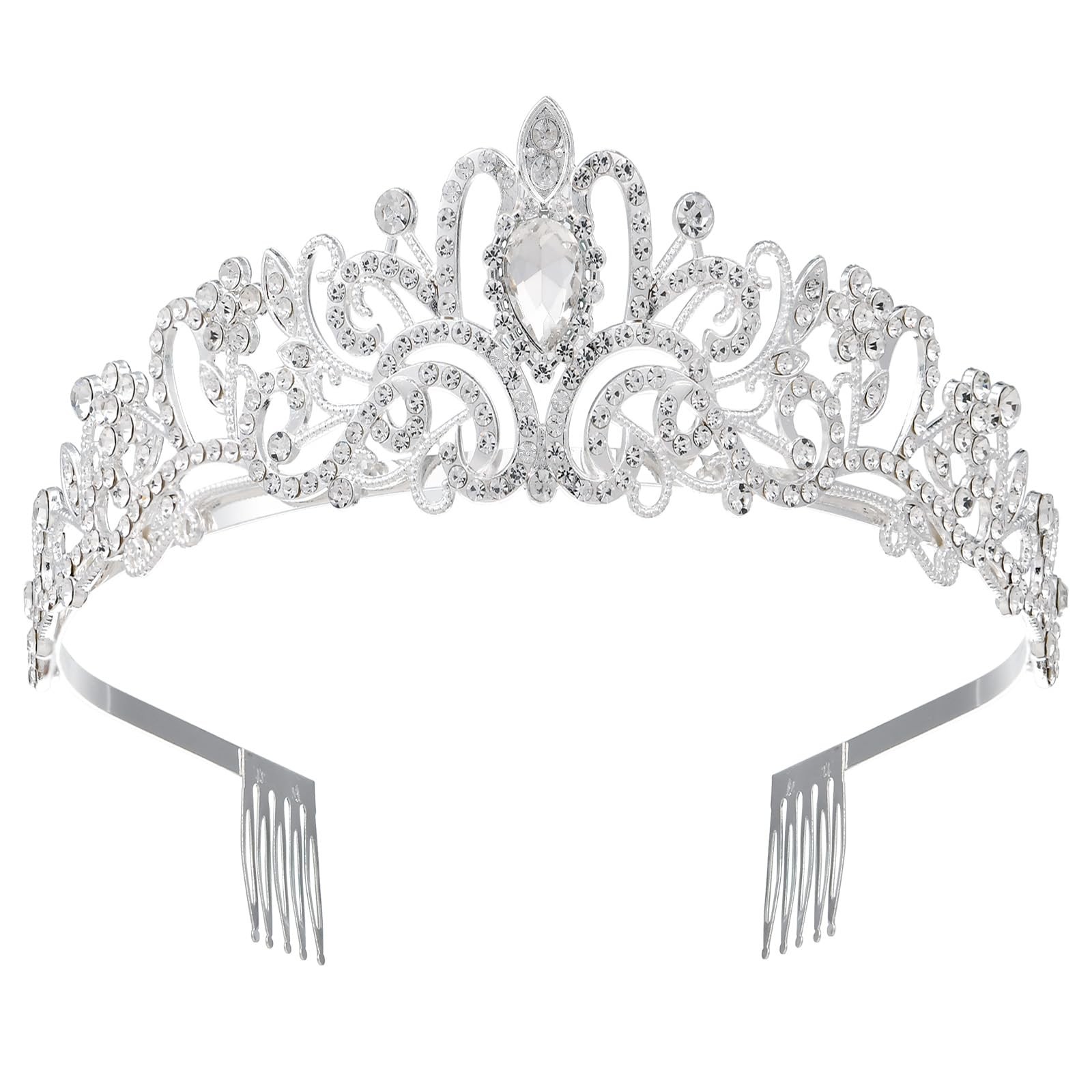 Sparkling Crystal Princess Tiara for Women Crown Queen Fashion 1 Pack, Silver