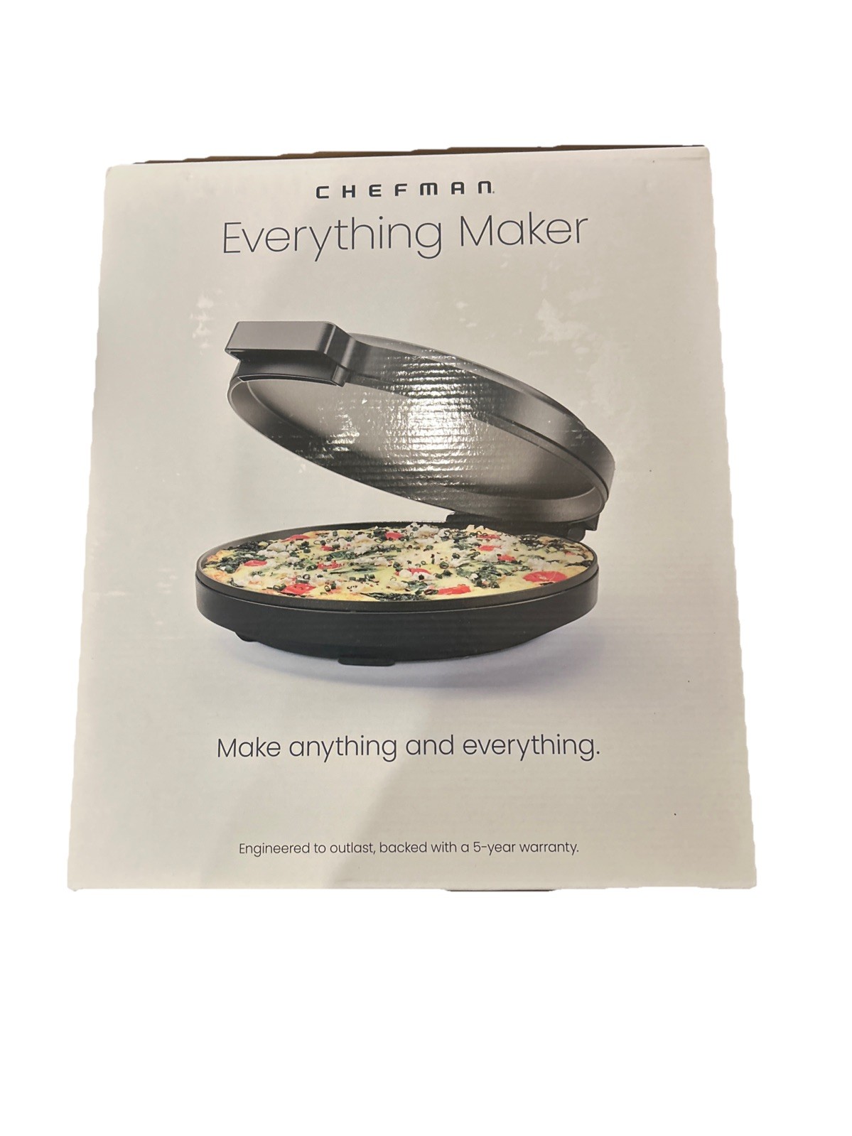 The Chefman Everything Maker is a versatile kitchen appliance designed for creating delicious pizzas with its 12-inch electric pizza maker. This convenient oven features 4 compartments, a non-stick surface, and a power source of 100W. With its sleek black plastic design and compact dimensions of 8 inches in height and 12 inches in width, this pizza maker is perfect for making homemade pizzas with ease. The Chefman brand ensures quality and reliability, making it a must-have for any home baker looking to expand their culinary capabilities.