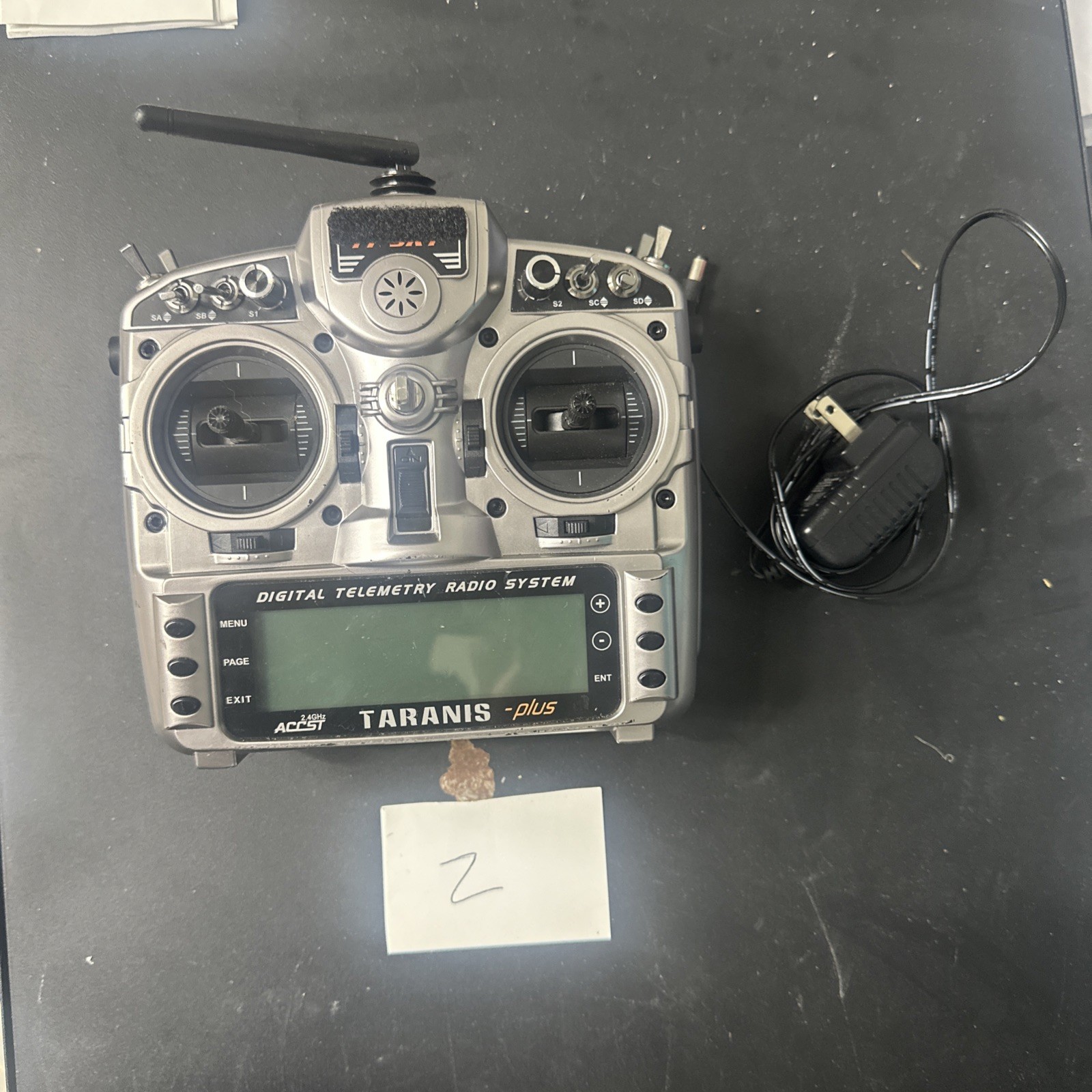 Selling a FrSky Taranis X9D Plus Digital Telemetry Radio System. • Does NOT power on when tested • Cosmetic wear from normal use (see photos) • No visible cracks, breaks, or major physical damage • Switches, gimbals, buttons, and antenna appear intact • Ideal for parts, repair, or electronics project Unit was acquired from a bulk/garage sale and has not been tested beyond confirming it does not power on. Includes, battery, charger, sd card.