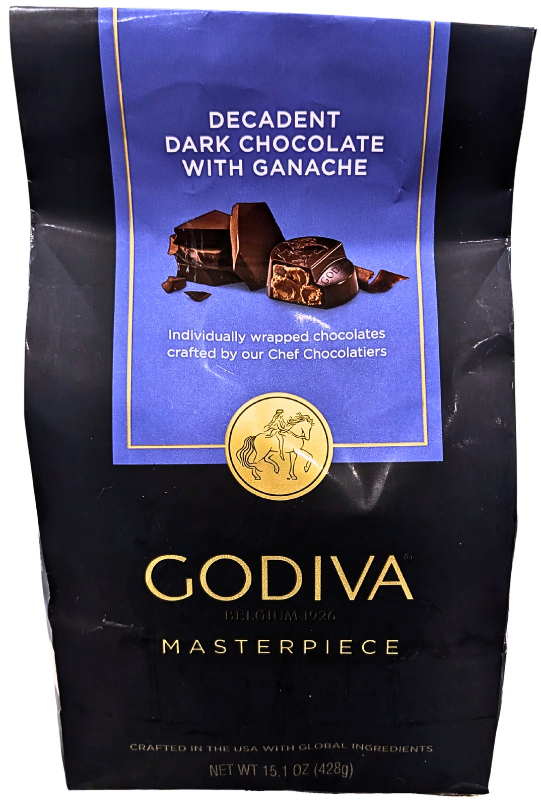 Dark Chocolate Ganache. Godiva Masterpieces. EXP 11/2026. Net Weight 15.1 Oz.