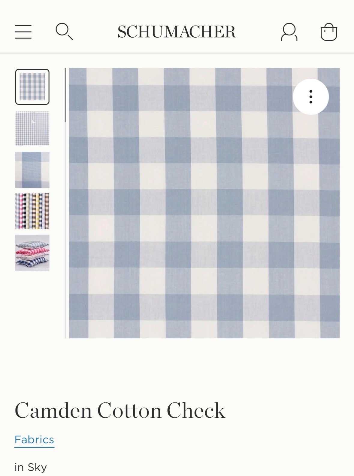 Classic Schumacher Camden cotton buffalo check fabric 4.67 yds, sky colorway.