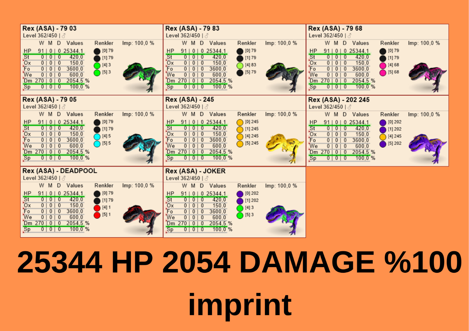 2054 DMG 25344 HP REX %100 imprint & EGGS Ark Survival Ascended Official PVE ASA