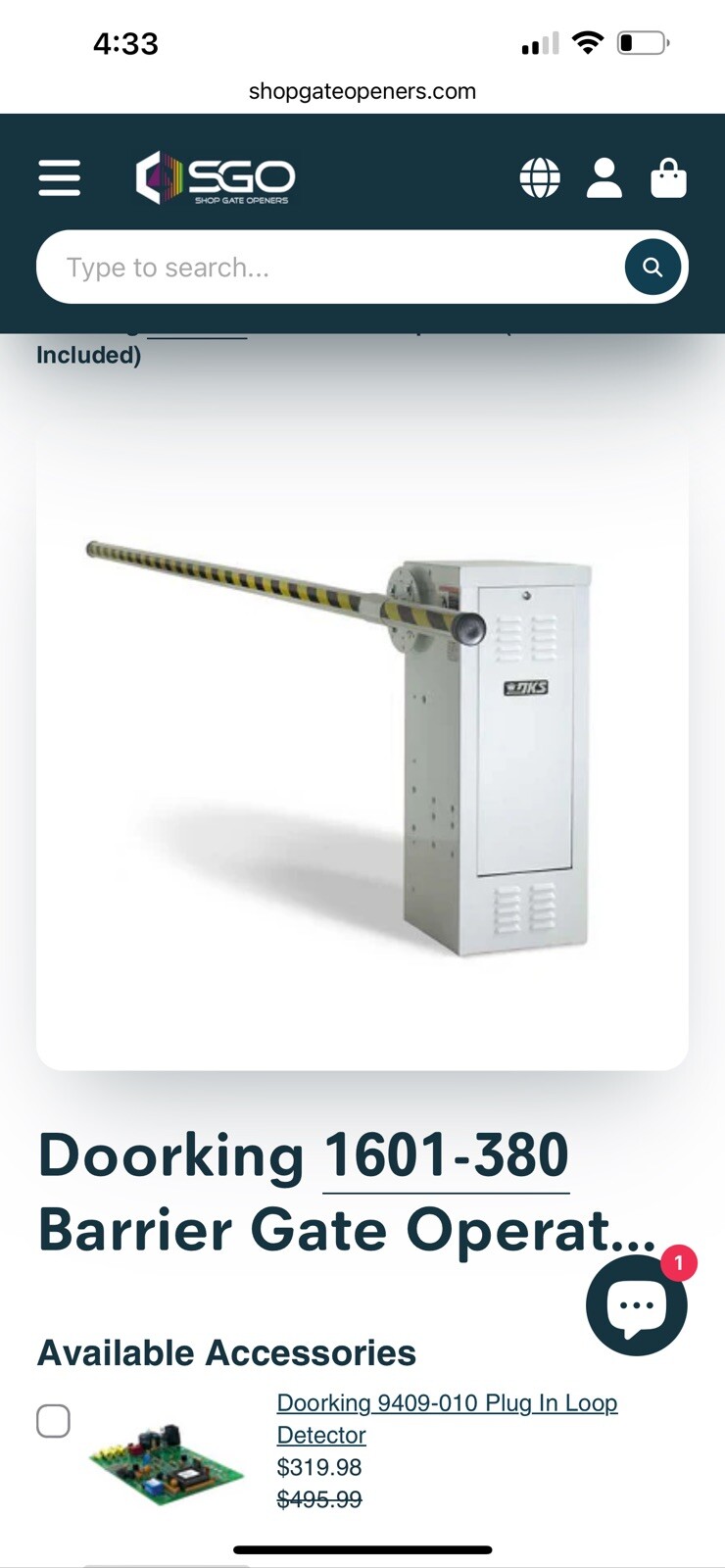 The product is a doorking 1601-380, which falls under the category of access control equipment. It is designed for facility maintenance and safety purposes, and is likely used in a business or industrial setting. The specific features and capabilities of the product are unknown. Weight 160 pounds 15x14x39 buyer is responsible for shipping charges