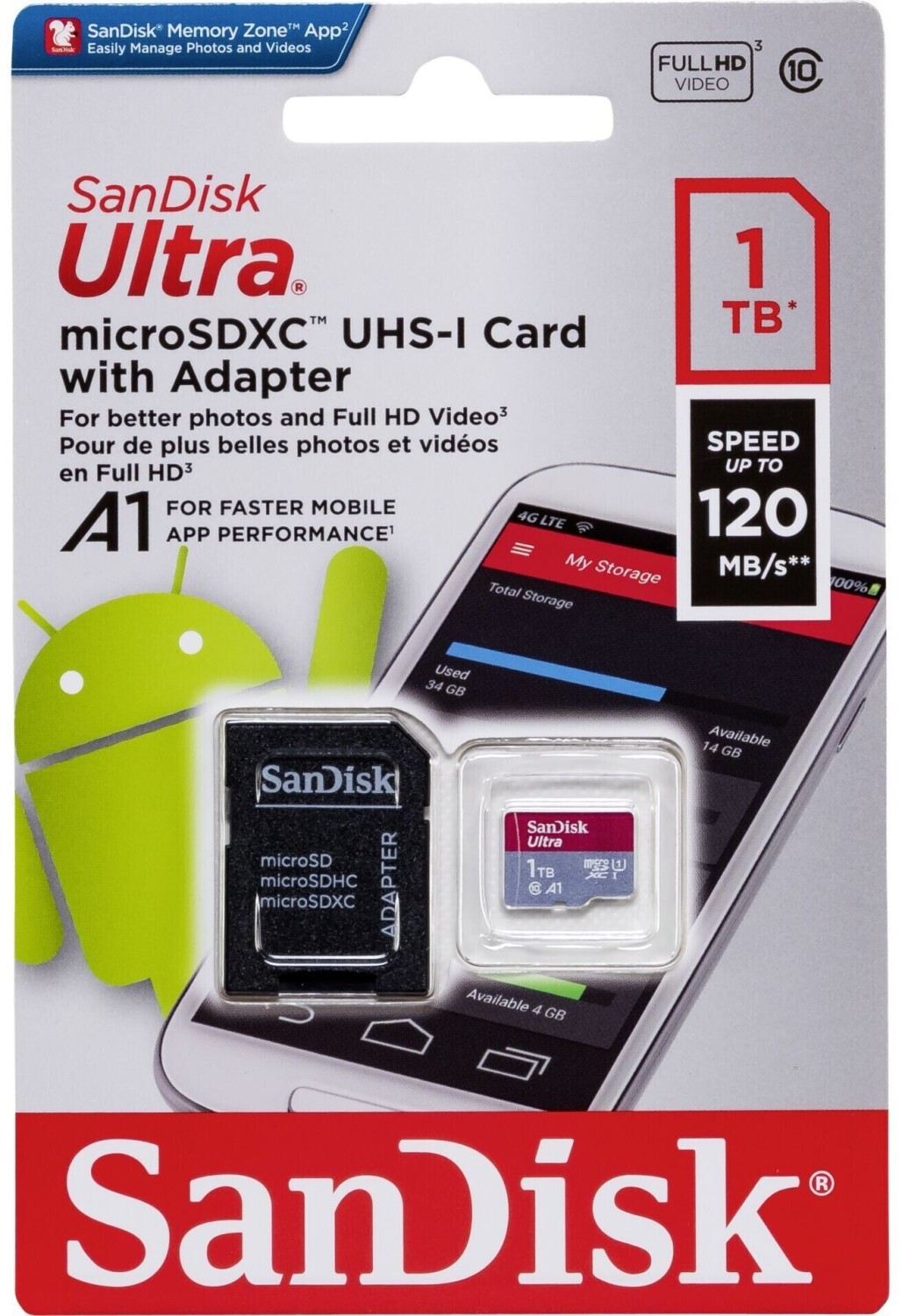 SanDisk Ultra 1TB Micro SD SDXC A1 C10 UHS-I 120MB/s HD Memory Card - Brand New