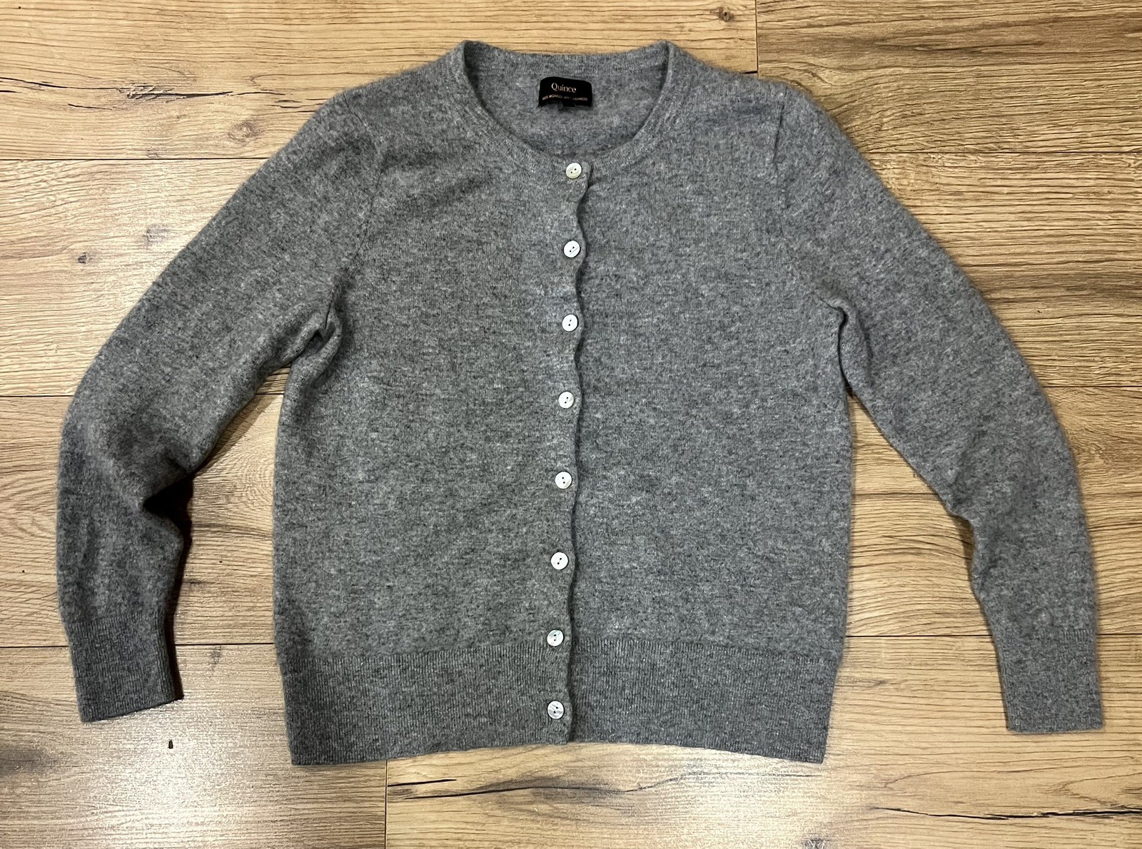 Quince Women Mongolian Cashmere Cardigan Sweater Heather Gray Sleeved Top M